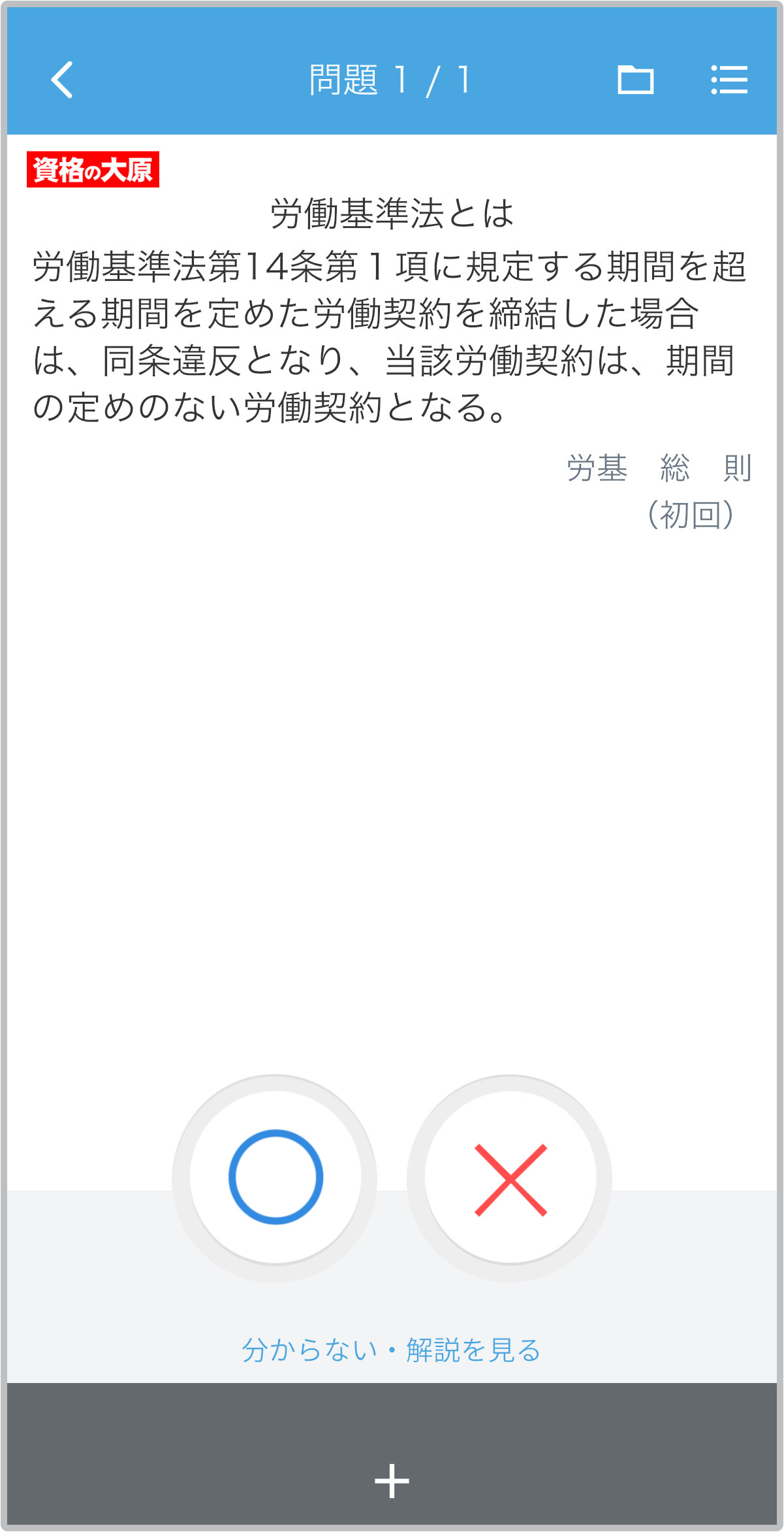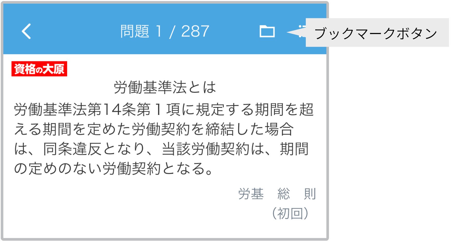 問題演習の右上にある「フォルダ」形状のボタンをタップするとブックマークとして登録されます。