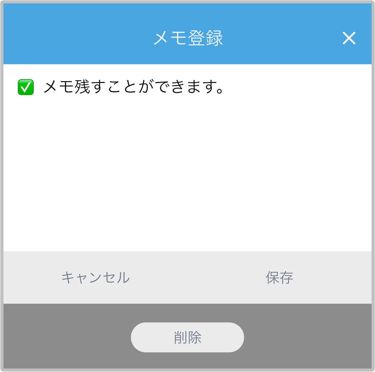 「メモ登録」ボタンをタップすると入力フォームが表示されます。メモを入力後、「保存」。削除したい場合は「削除」ボタンを選択してください。