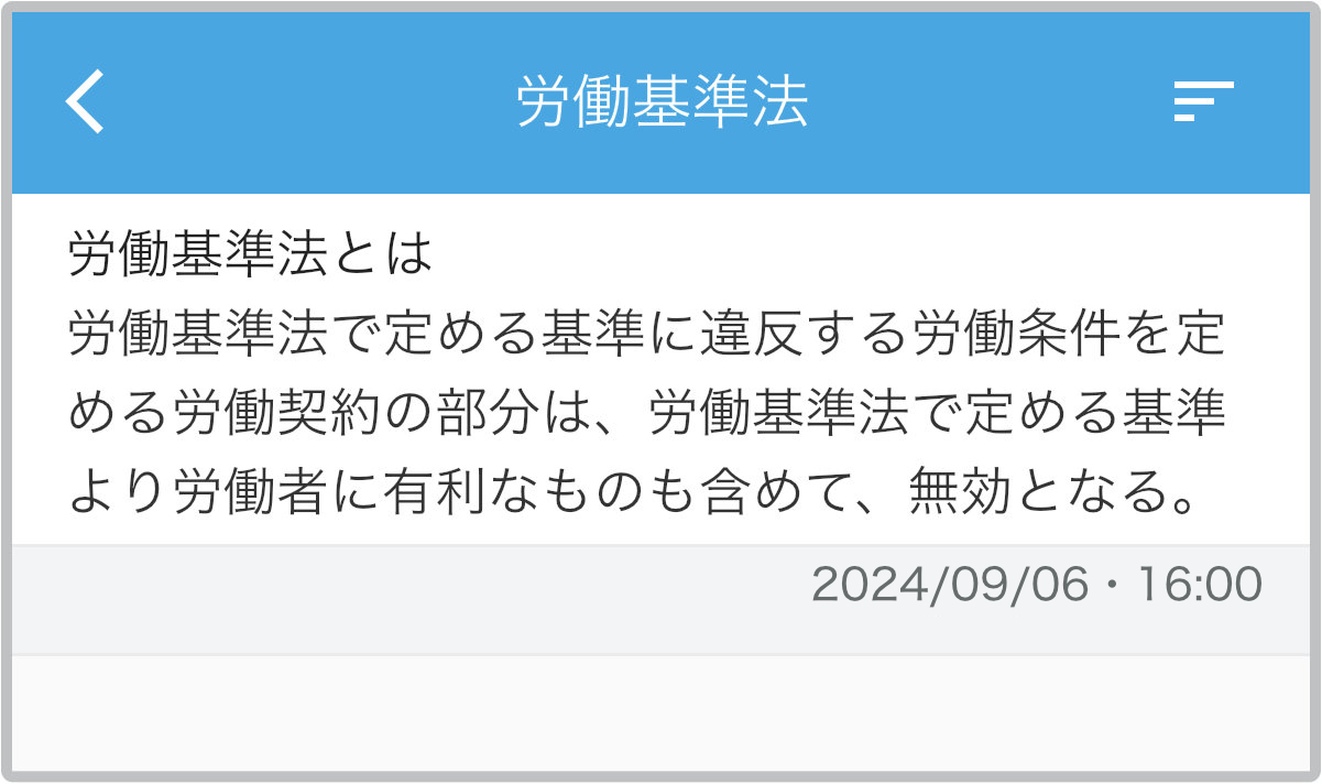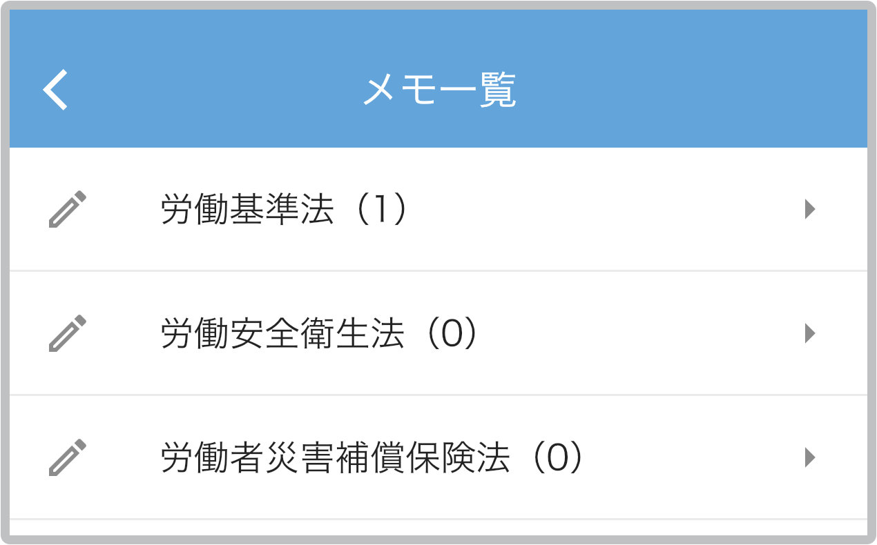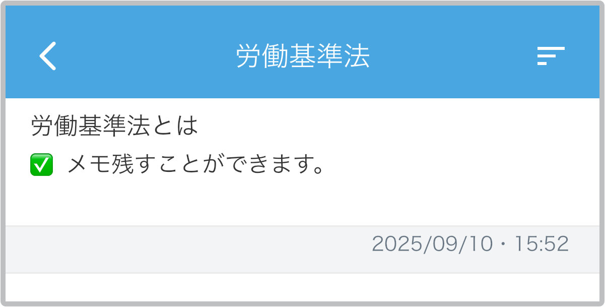科目をタップすると、科目内に登録されたメモが一覧されます。