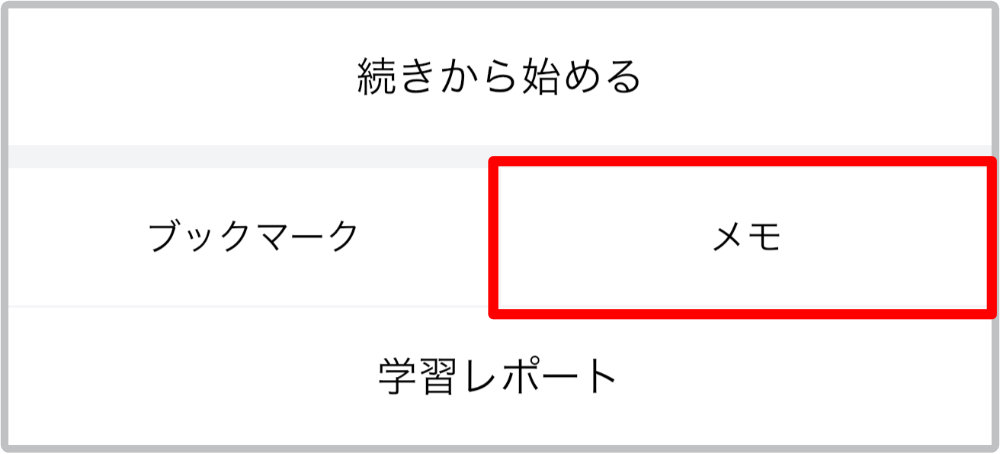 ブックマークと同様に、科目別にメニューが表示されます。()括弧内の数字は、登録メモ数です。