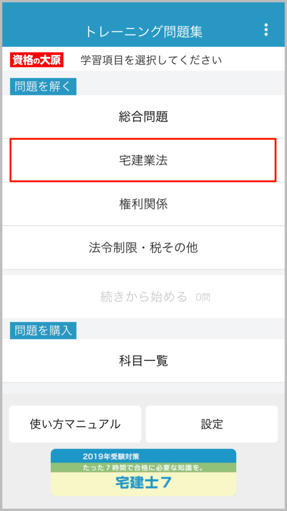 学習したい科目を選択します。「総合問題」は、すべての科目を対象としています。科目全体の正解率を確認したいなど、科目をまたいで学習するとき便利な機能です。
